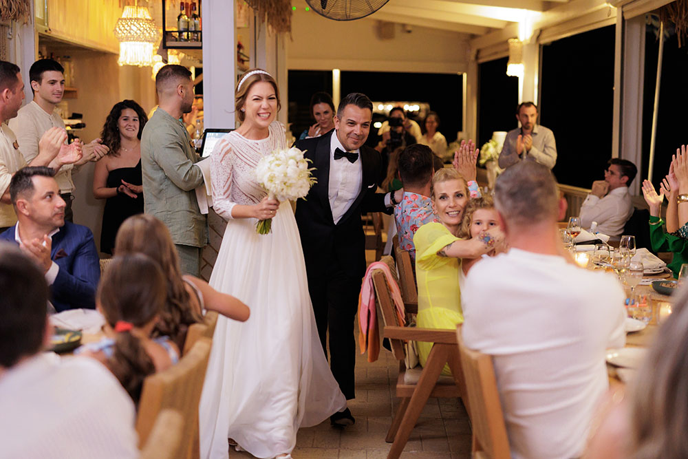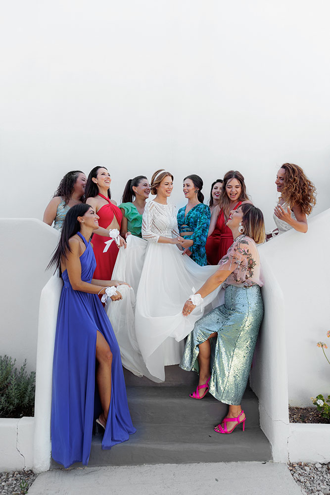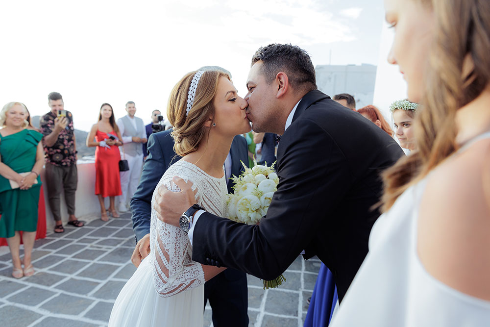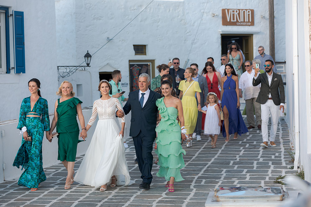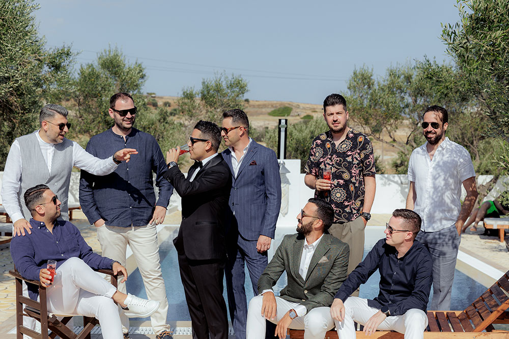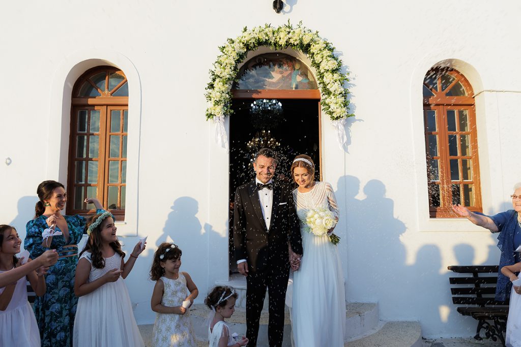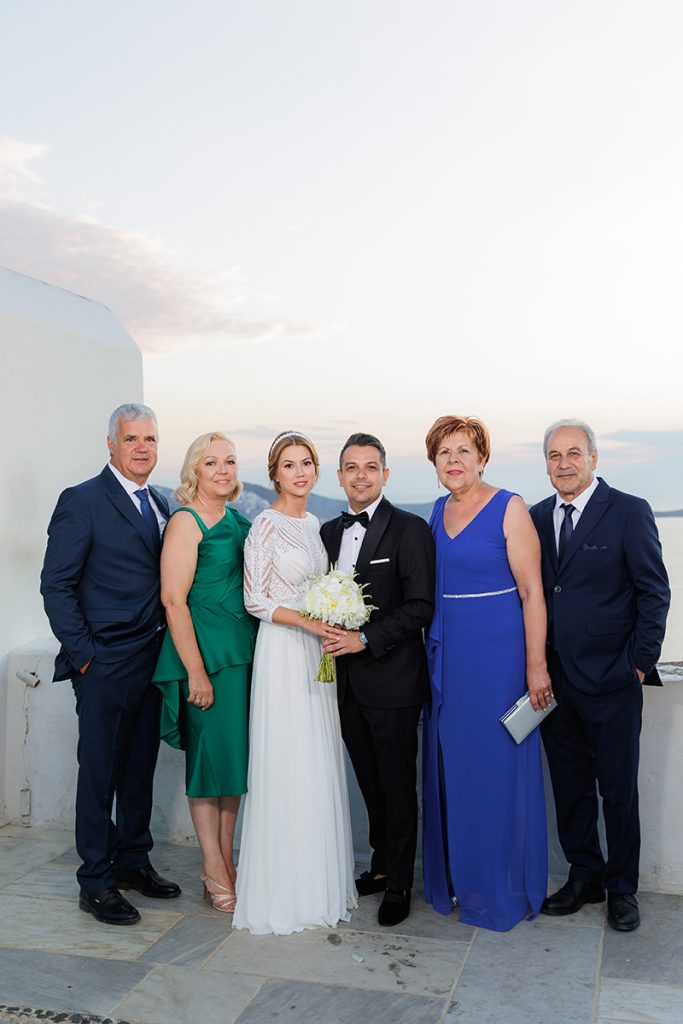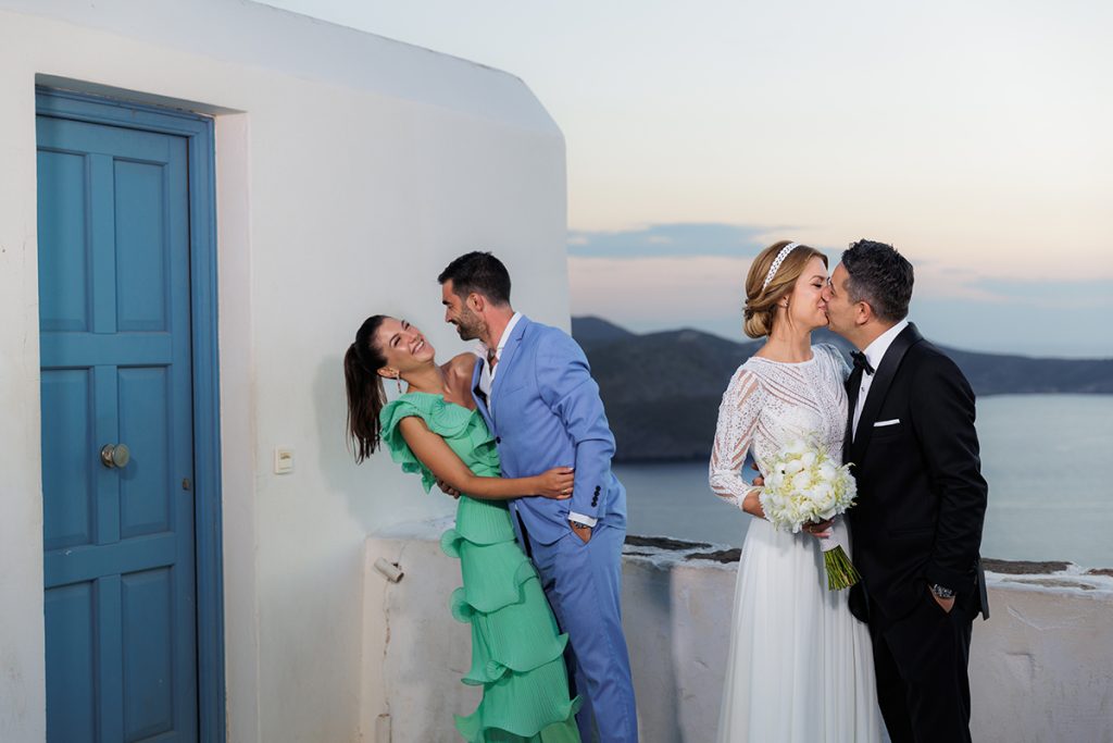 On the wedding day, emotions ran high as family and friends gathered to support the couple during their getting-ready moments. Laughter, tears, and heartfelt words filled the air, setting the tone for a beautiful ceremony. As the couple married at Church Of Panagia Korfiatissa, surrounded by the island’s unique landscapes, love and joy radiated through every moment. The celebration continued into the night with a lively reception, where music, dancing, and heartfelt toasts created memories to last a lifetime.